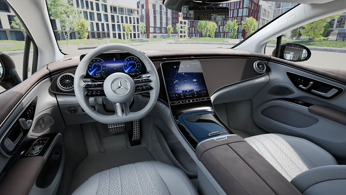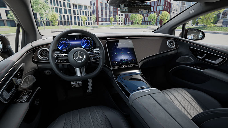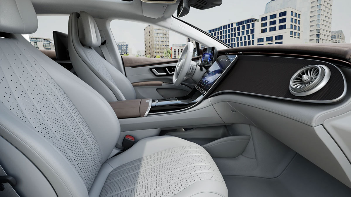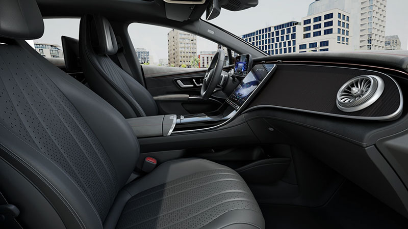 Tái thiết vẻ đẹp nội thất đầy trang nhã: nội thất của EQS truyền cảm hứng đầy mê hoặc. Thiết kế mãn nhãn giao thoa khéo léo giữa tính thẩm mỹ và ứng dụng trực quan.